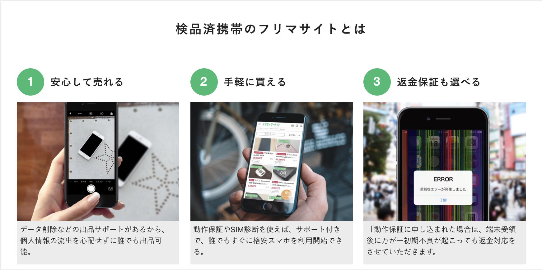 トラブルに遭うリスクの高いメルカリから中古のXperiaの本体を購入するなら、なるべく保証が付いた商品を選ぶことをおすすめする。