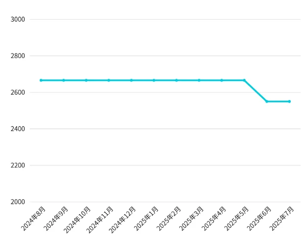買取価格は、直近1年間では2,500円前後で推移。2023年からも同じ価格帯で取引されていて、大きな値崩れは起きていません。