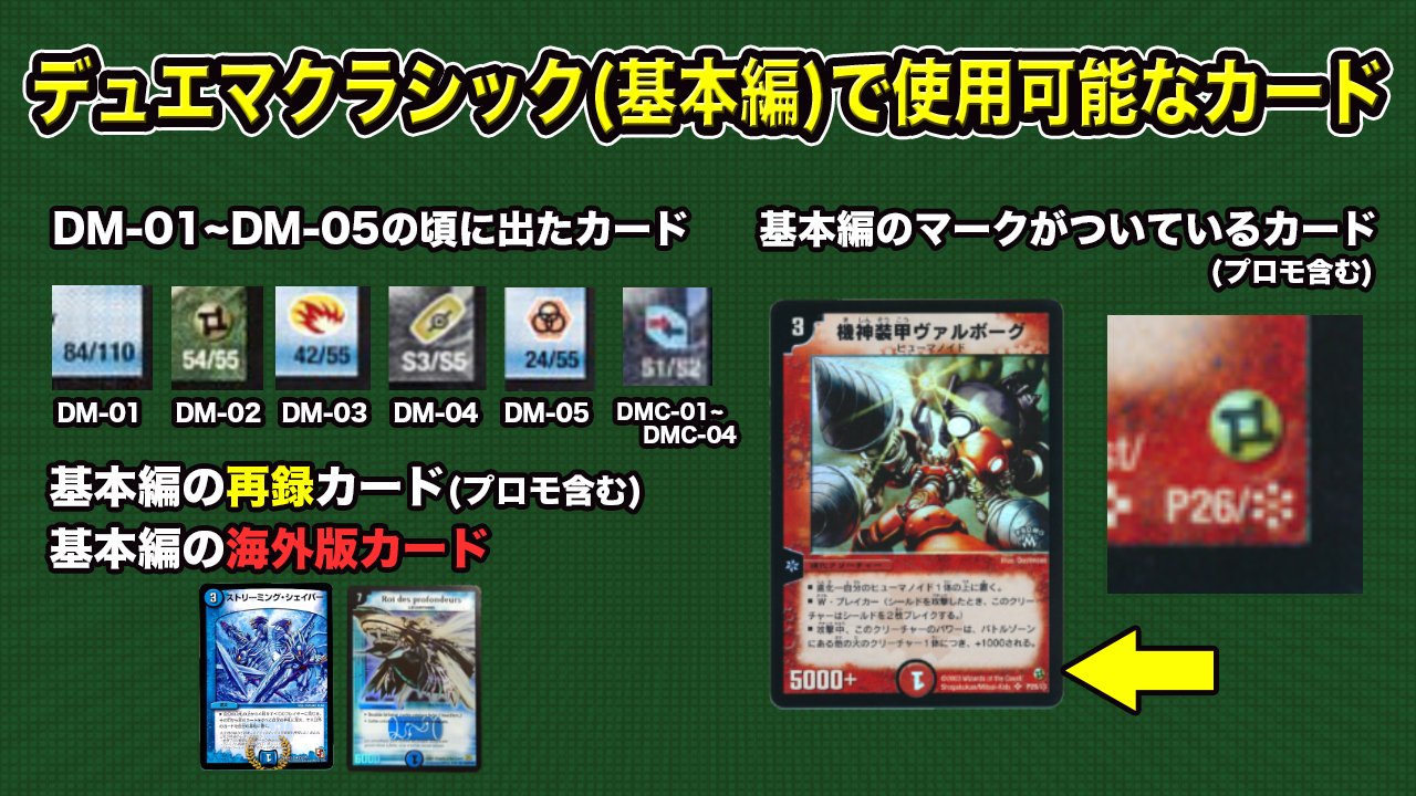 【デュエマクラシック】 デュエルマスターズ第1弾〜第5弾までのカードで遊ぶ特殊ルール。 ・再録カード使用OK ・海外版のカード使用OK ・制限禁止は当時のものとは異なる
